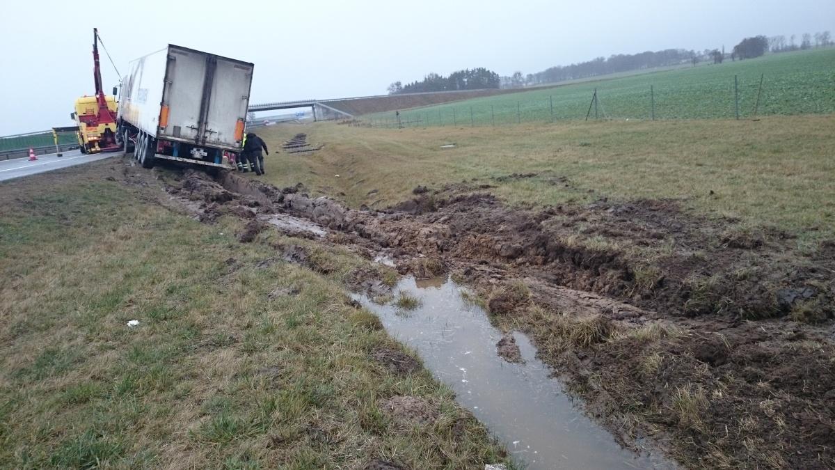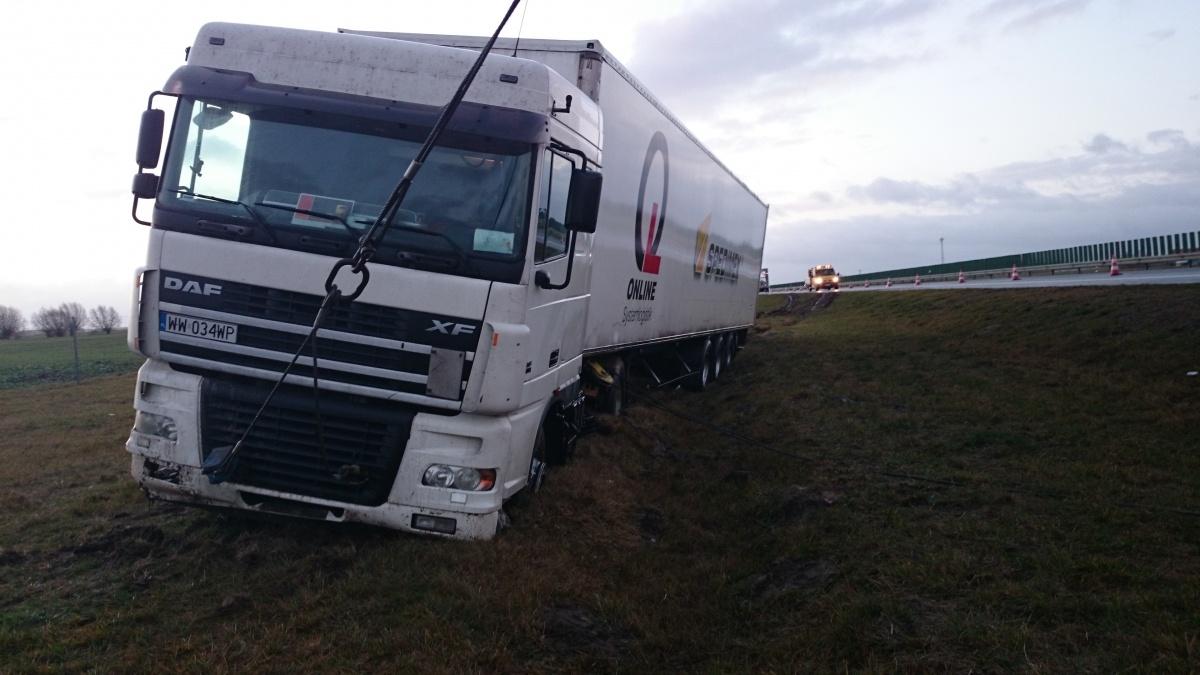 Wyciąganie TIR z rowu
